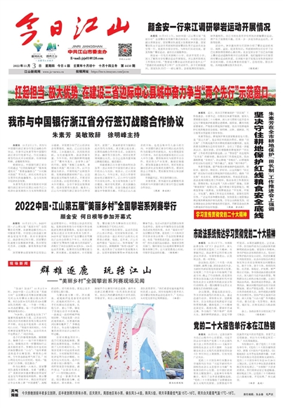 朱素芳代表市委市政府对中国银行浙江省分行长期以来给予江山经济社会发展的大力支持和帮助表示感谢,并简要介绍了江山经济社会发展情况。她说,江山区位优势明显,工业基础扎实、民间投资活跃,文化底蕴深厚、旅游资源丰富。今年年初,我们旗帜鲜明地提出了“衢州当龙头、全省争上游”的目标,围绕“重振工业雄风、重塑城乡风貌”两方面工作,以平台建设为抓手,开展传统产业转型升级、发展新能源新材料产业;以创建全国文明城市为抓手,开展老旧小区改造;以经营的理念,开展未来乡村建设。全市干事创业氛围浓厚、经济发展势头强劲。她表示,江山与中国银行浙江省分行合作空间大、前景广,真诚希望双方能够以此次签约为契机,真正建立起全面、长期的战略合作伙伴关系,全面深化资金、融资等方面合作,同时在更多领域擦出火花,合力让这条共富双赢之路越走越远、越走越好。