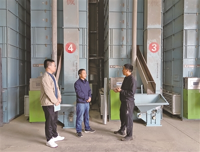 连日来,市纪委市监委派驻市农业农村局纪检监察组会同农业农村部门,对全市近30家粮食烘干中心开展安全生产检查,检查内容为安全生产责任书是否签订、警示标语是否设置、现场作业是否规范等,确保粮食安全。图为督查组在市佳源家庭农场粮食烘干中心检查安全生产。