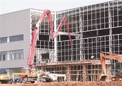 万里扬年产12万吨新能源汽车合金结构件项目位于江山经济开发区城南工业园,项目分两期建设,用地面积356.5亩。其中一期项目于今年2月开工,目前已完成厂房主体建设及部分设备安装,预计年内建成投产。图为一期项目施工现场。