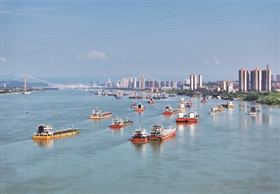 近日,湖北省宜昌市伍家岗长江水域,大批船舶满载秋收用油及秋播物资驶向长江上游地区,为秋收秋播生产保供。时下进入秋收生产用油需求量增大关键期,进入秋播生产物资储备期,长江宜昌水域出现千帆竞发忙碌运输的火热场景。