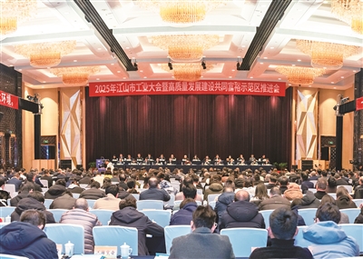 本报讯 2月6日上午,我市召开2025年工业大会暨高质量发展建设共同富裕示范区推进会,这是江山连续第四年聚焦工业主题召开“新春第一会”。市委书记朱素芳强调,要深入学习贯彻习近平总书记重要讲话重要指示批示精神,全面贯彻落实省、衢州市“新春第一会”部署要求,大力弘扬“六干”作风、激发“五拼”劲头、落实“五更”要求,全力以赴重振工业雄风,奋力谱写江山高质量发展新篇章。徐明峰、汪胜、胡炳泉、何日根等市四套班子领导出席,2024年度产值10亿元以上企业和纳税2000万元以上企业有关负责人在主席台就座。