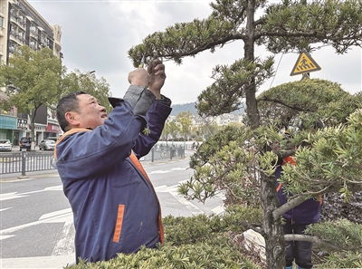2月23日,园林工人在北关路对路边的景观树进行管护。随着气温逐渐回升,市住建局园林处抢抓春季绿化养护黄金期,全面开启园林树木养护工作,提升城市景观。(姜层层 摄)