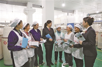 3月5日,市人民法院法官、巾帼法助营商志愿服务团成员走进辖区纺织企业,开展普法宣传。在职工休息间隙,法官结合《妇女权益保障法》《劳动法》深入浅出地解答女职工关心的劳动合同解除、工伤保险、失业保险等问题,引导她们树立“遇事找法、解决问题靠法”的法治意识。